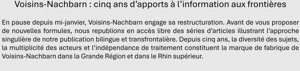 La coopération transfrontalière se construit généralement sur plusieurs décennies, mais elle voit parfois apparaître de nouveaux acteurs. De part et d’autre des frontières, les partenaires épousent des cause communes… qu’ils parviennent rarement à concrétiser.